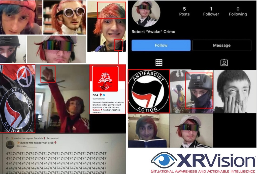 Crimo also has ties to Antifa. In one picture posted to his social media, he shares his black Antifa outfit, helmet and all.